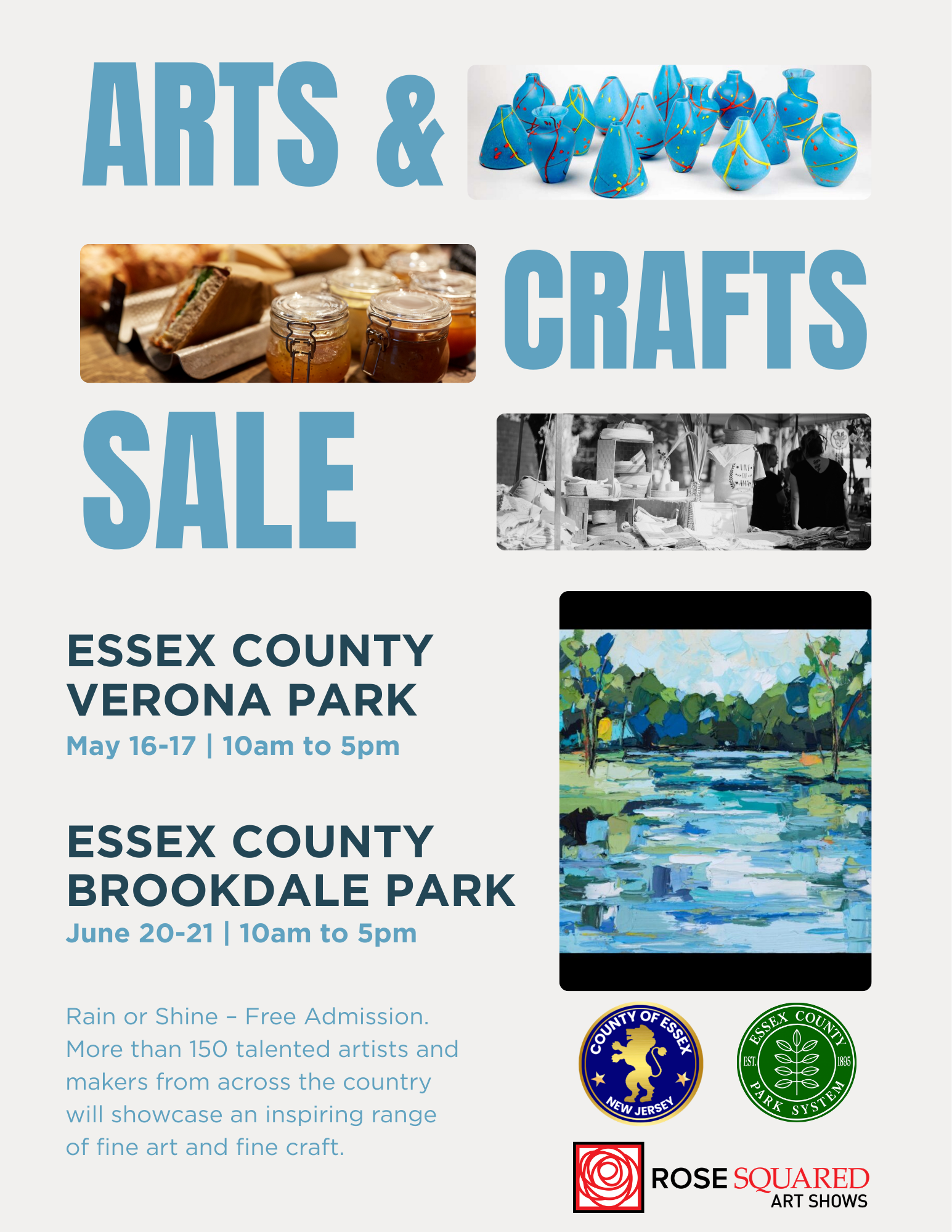 Rose Squared Art Shows presents fabulous, creative artisans at Verona Park May 16-17, 2026. This event showcases both fine art and fine craft with works in apothecary, artisanal foods, ceramics, jewelry, wood, digital art, decorative and wearable fiber, furniture, glass, painting, 2D/3D mixed media and photography.